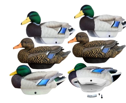 New for 2019, Lifetime Decoys FlexFloatTMÂ Mallard Decoys set the new standard for quality and durability in waterfowl decoys. An EVA foam, open bottom construction combined with the patent pending DualFlow SwimkeelTMÂ system allows for more movement with less wind, the ability to sit flat on ice and dirt, and a virtually indestructible design which can be shot or otherwise punctured and still float. Each decoy weighs only 11 ounces (with self righting keel weights removed), or 19 ounces with weights installed. 6 Pack includes 4 Drakes and 2 Hens.